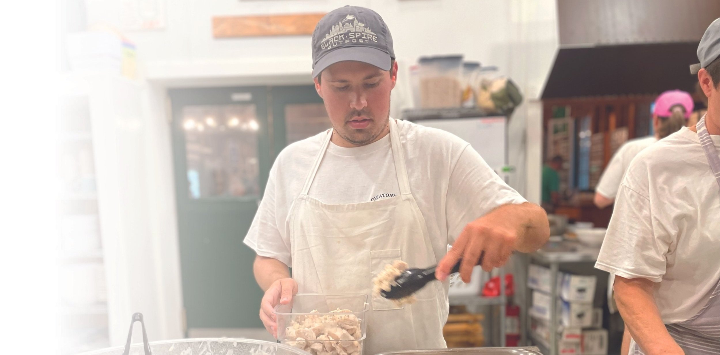 The first trainee in CherishAbility’s pilot Vocational Training Program at Camps Newfound and Owatonna in Maine, Daniel prepped meals in the Owatonna kitchen for the entire boys camp.